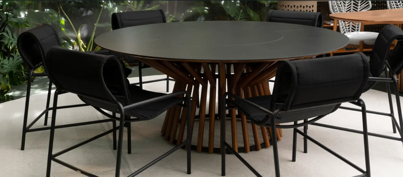 - Tampo e giratório em Madeira Teca com Pedra Sinterizada