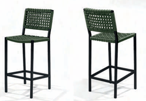 Cada banqueta possui corda náutica no encosto e assento e pés em alumínio.